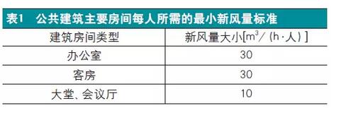 在選擇新風(fēng)系統(tǒng)的新風(fēng)量大小時(shí),已經(jīng)通過實(shí)驗(yàn)研究得出了不同新風(fēng)量對(duì)空調(diào)房間溫度的影響,除此之外,新風(fēng)量大小的選擇與空調(diào)房間的面積及關(guān)系也十分密切。國(guó)家對(duì)公共建筑內(nèi)的設(shè)計(jì)最小新風(fēng)量也有規(guī)定,見表1。另外根據(jù)設(shè)置有新風(fēng)系統(tǒng)的居住建筑,所需的新風(fēng)量按換氣次數(shù)確定,見表2。