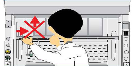 4、盡可能地以緩慢的動作,在通風柜工作區內操作。