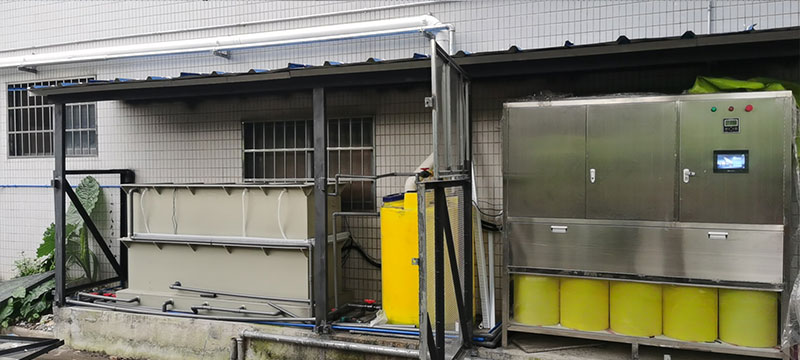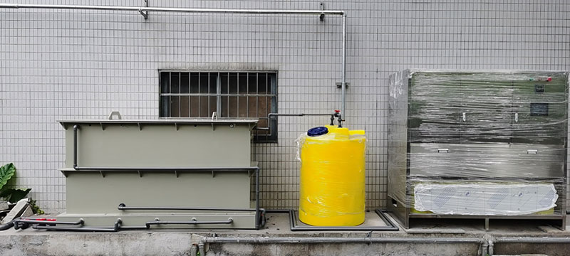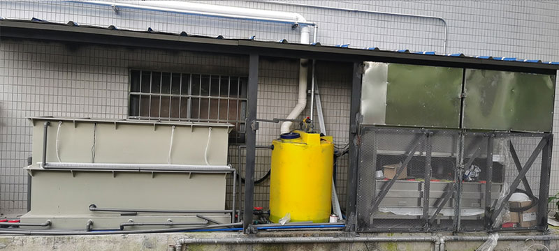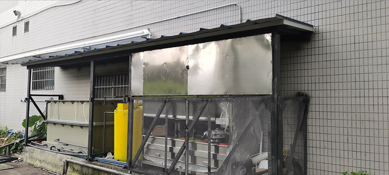 本次廢水處理項目位于黃埔區,廢水處理項目由蝶萊環境負責全程設計制造,位于車間外的一處平臺放置廢水處理設備,并搭建廢水處理間。