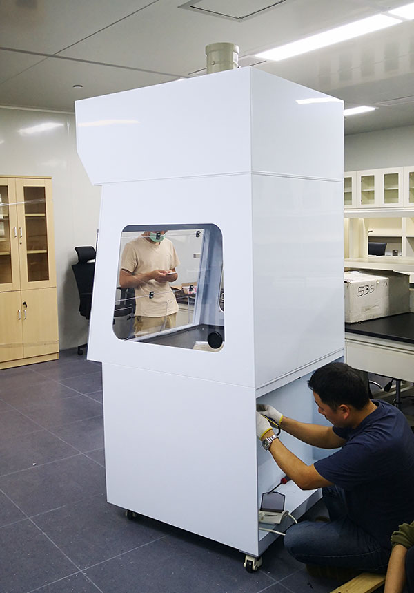 該學校由于本校實驗室無法滿足日常使用,所以附近的商業大廈租用些辦公室用于建設實驗室,但是由于該樓是商業用樓無法安裝用于廢氣處理的管道系統,所以需要無管道凈氣型通風柜來做實驗,滿足用于日常教學及學生的研究使用。