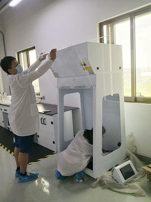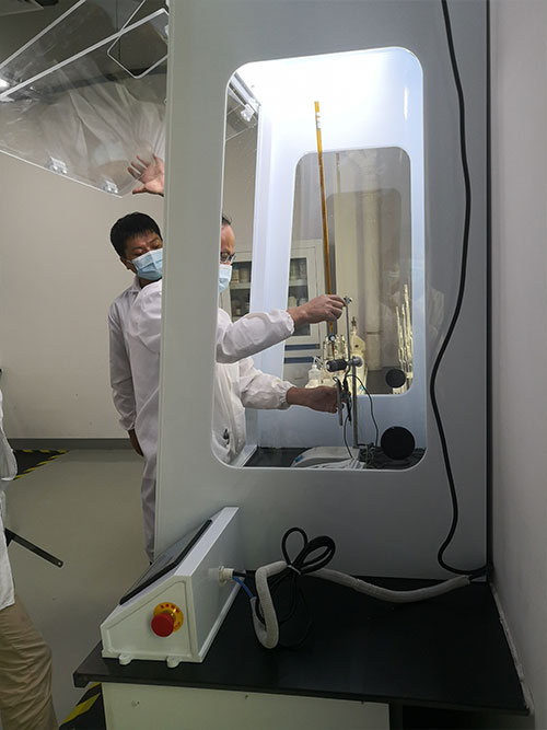 作為老客戶,這次先導稀材定制了一個比較特殊的凈氣型通風柜,PP耐腐蝕材質,并根據實驗操作的需要加高了柜內操作空間,并將操作控制部分獨立,方便操作。