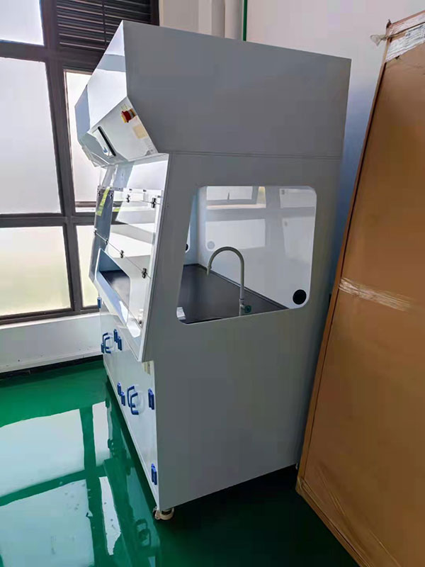 該研究所研發實驗室已經裝修好,但是原有通風柜數量無法滿足需要。想要在目前的實驗室中加裝排風通風柜是非常困難的,需要走管道接入排風系統,這是非常麻煩的事。最終選擇了我們蝶萊無管道凈氣型通風柜,它無需接管道,只要一小時內就能裝好并使用,節能環保不損耗空調能耗,可以節省運營開支。