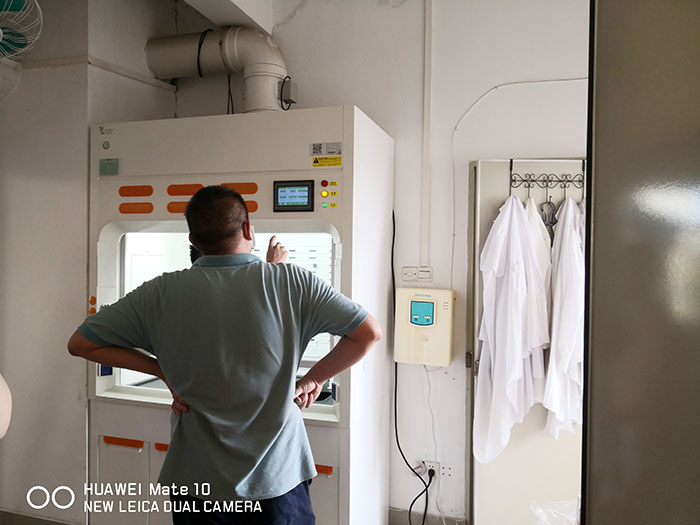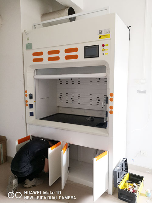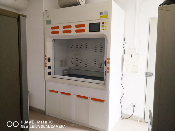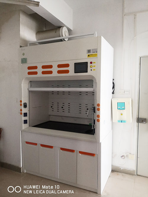 該項目位于該學(xué)校的實訓(xùn)樓的三個實驗室,原來使用的是傳統(tǒng)有管道通風(fēng)柜,但是這些通風(fēng)柜使用時間長,都已經(jīng)銹跡斑斑;并且原來的通風(fēng)系統(tǒng)和廢氣處理設(shè)備也缺乏維護,使用效果變得越來越差,所以決定更換成我們的玻璃鋼凈氣型通風(fēng)柜。蝶萊玻璃鋼凈氣型通風(fēng)柜材質(zhì)耐腐蝕性良好,無耐擔(dān)心酸堿試劑的腐蝕,而且不用連接管道,室內(nèi)內(nèi)循環(huán)凈化,使用簡單,日常維護也非常的方便。
