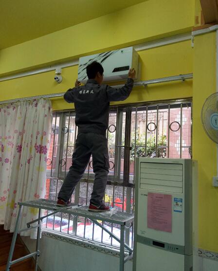 廣州市天河楓葉幼兒園,是天河區一級幼兒園,園舍設備設施按照省一級幼兒園的標準配置,在應對孩子呼吸的問題上,校方領導也一直竭盡所能,尋求最佳的方案為孩子創造一個清新的教學環境。廣州雖然不像北方身處霧霾地段,但是天氣悶熱、潮濕,幼兒園孩子集中,室內往往通風不良,空氣質量不佳。楓葉幼兒園從孩子角度出發,在通風較差的音樂教室內加裝蝶萊壁掛式新風機,讓孩子沐浴在新鮮空氣和美妙歌聲的雙重享受中,陶冶情操,以獲得更高的學習效率。
