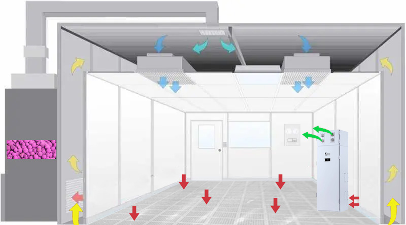 在潔凈室中使用蝶萊空氣凈化機,內部使用了化學過濾器和HEPA過濾器,高效吸收凈化有害氣體,可以有效保證制程環境潔凈度。