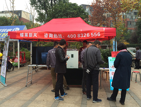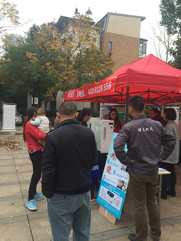 活動現(xiàn)場人氣高漲,治理室內(nèi)空氣引起了不少小區(qū)業(yè)主的共鳴,他們紛紛上前了解、咨詢,并對蝶萊新風機表現(xiàn)出濃厚的興趣。蝶萊工作團隊耐心地為在場的人員解答產(chǎn)品咨詢及其他各種室內(nèi)凈化和健康呼吸的疑問。活動現(xiàn)場更推出全新的訂購優(yōu)惠,不少業(yè)主當場預訂產(chǎn)品,活動不斷掀起關注的高潮。