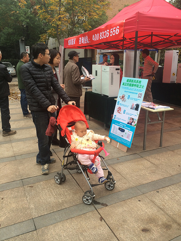 在與小區(qū)業(yè)主交談中,蝶萊新風團隊了解到:室內(nèi)空氣污染已經(jīng)成為眾人的困擾,裝修及家具帶來的甲醛、霧霾天引起的PM2.5,嚴重威脅著人們的身心健康,可是大家卻苦于找不到最好的治理方法。“以前只知道空氣凈化器,沒想到新風系統(tǒng)除了凈化,還可以引進室外新鮮空氣,確實比空氣凈化器要好”,在場的小區(qū)業(yè)主林先生說道。現(xiàn)場不少寶媽寶爸也被吸引過來,愛子心切的他們也時刻在想辦法為孩子營造一個純凈的家居環(huán)境。
